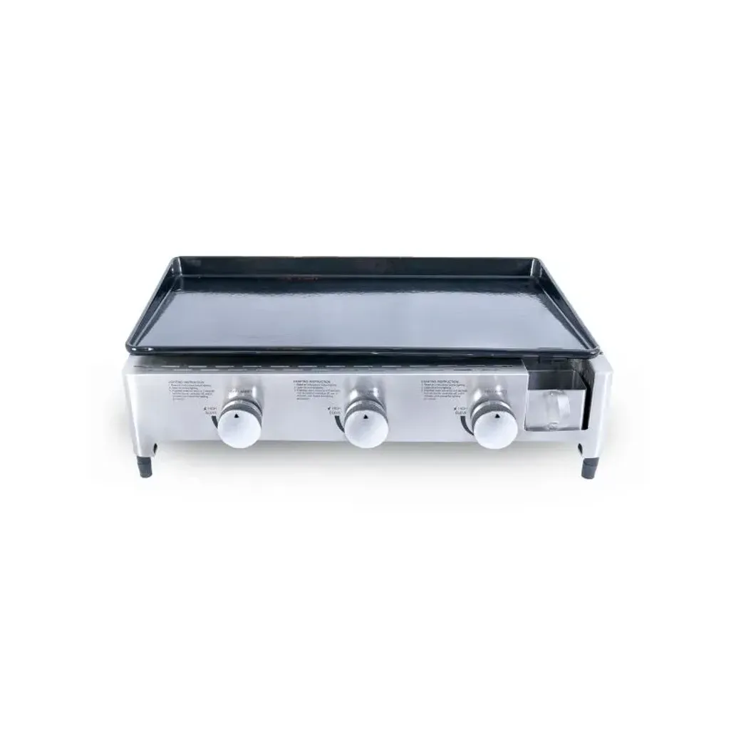 The Megamaster 3 Burner Plancha offers three stainless steel burners with 24000 total BTUs, 8000 per burner. It is designed for traveling, making it ideal for road trip adventures with your family and friends.
