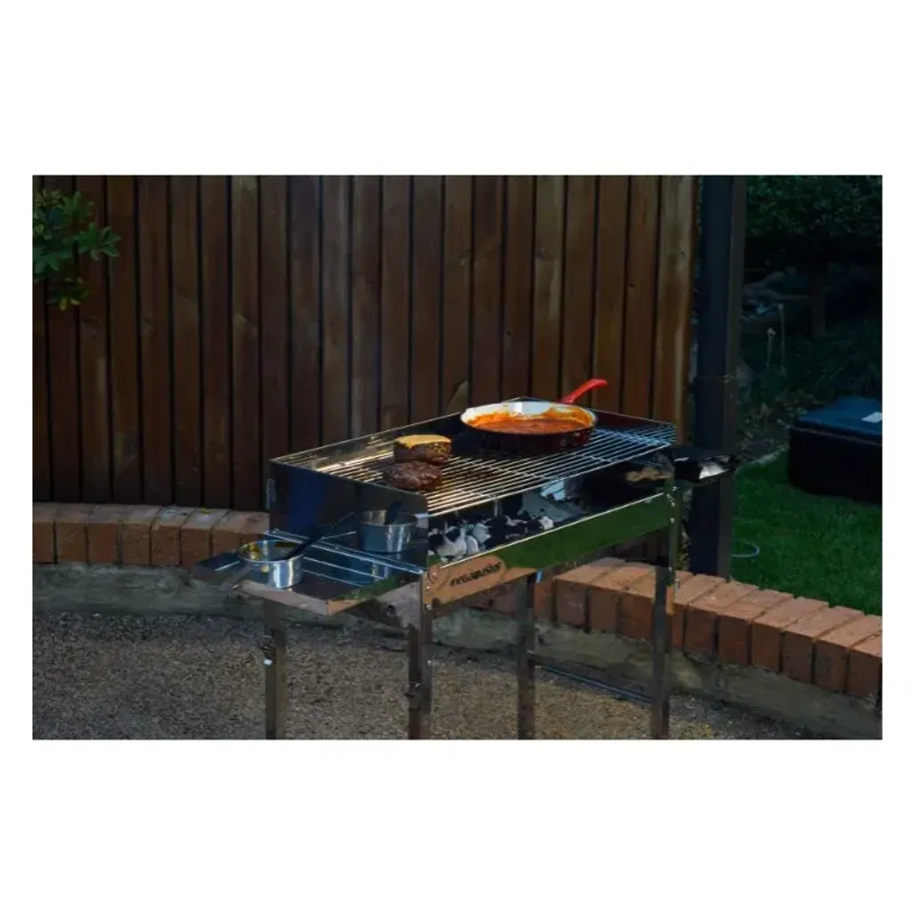 The best part is that you are able to take it anywhere! This braai is designed to travel, with a lightweight stainless steel frame weighing just 9 kg. It folds flat in seconds. A rear handle makes carrying even easier, so you can explore without hassle.