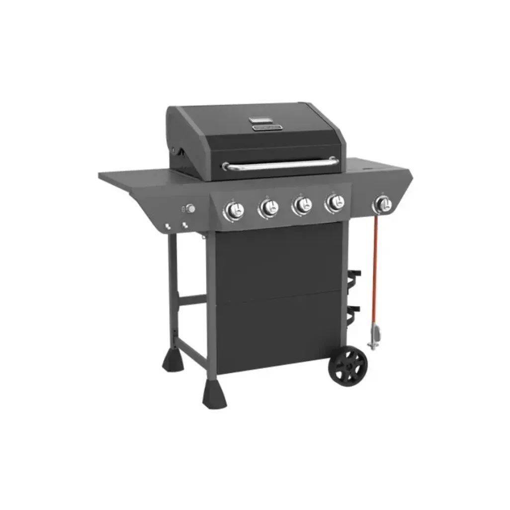 The Megamaster Onyx Series 4 Burner Patio Gas Braai offers four stainless steel burners with a total heat output of 44,000 BTUs. It has two wheels for easy movement from your garage to your patio and back to your garage.