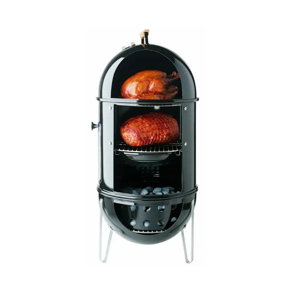 The Weber 47cm Smokey Mountain Cooker is equipped with two 47 cm triple-plated cooking grates and offers ample space to work with, allowing you to braai a feast for your gatherings. The lid thermometer enables you to keep a close eye on the cooking temperature, guaranteeing precision and optimal results every time. Crafted with rust-proof aluminium vents featuring heat-resistant plastic handles, the smoker provides proper airflow essential for achieving that perfect braai flavor. The inclusion of a glass-reinforced nylon handle and heat deflector underscores the user-friendly design, making sure you can handle and move the smoker with ease, whilst also safeguarding your surroundings from potential scorching.