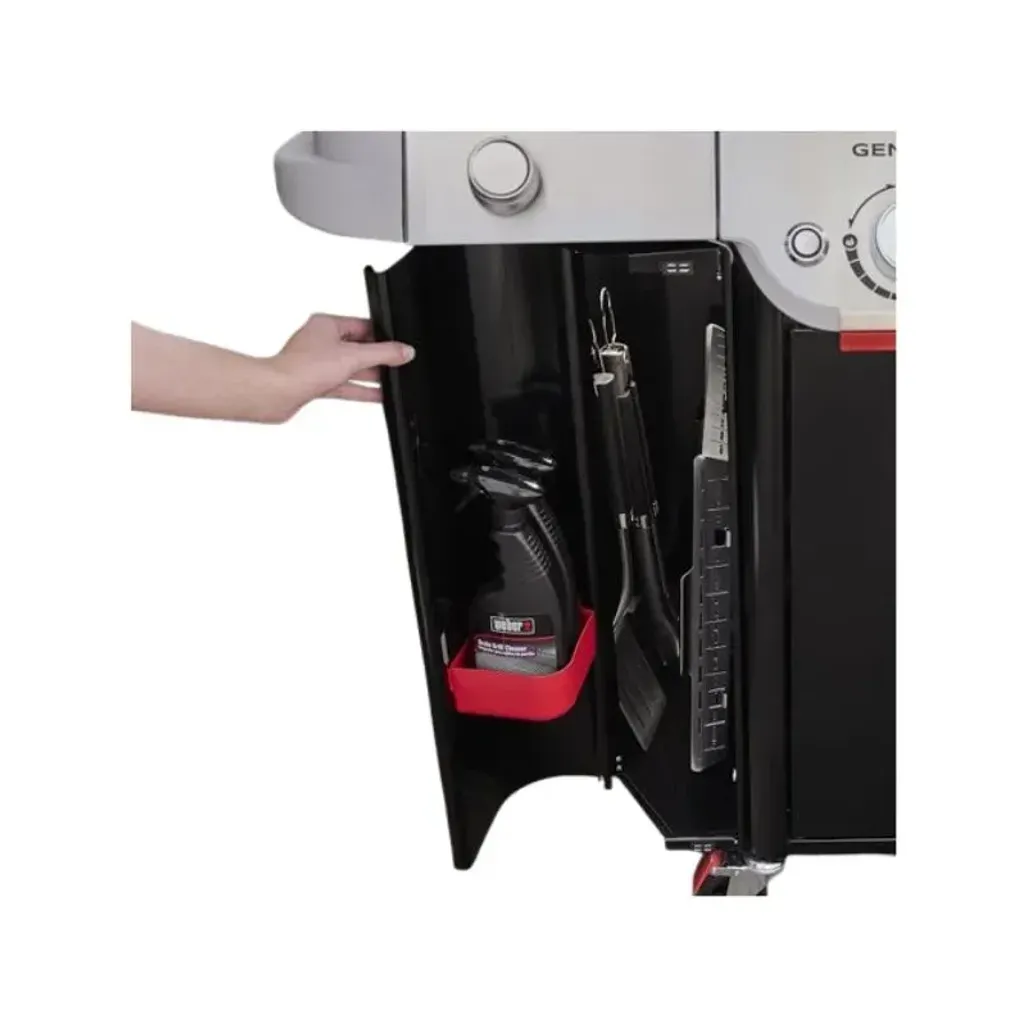 Sauté, simmer, or boil on the convenient side burner while your main course is being prepared as well. You are welcome to expand your menu using the Weber Crafted® Gourmet BBQ system cooking grates, compatible with a range of grillware, but it is sold separately, such as a pizza stone, griddle, or wok. The Weber Genesis EP-435W Gas Braai is designed with entertaining in mind. Keep essentials close with large, customizable side tables, compatible with Weber Works snap-on accessories, which are also sold separately. The store tools, cookware, and ingredients can be stored in the spacious barbecue locker, so everything is ready when you are.