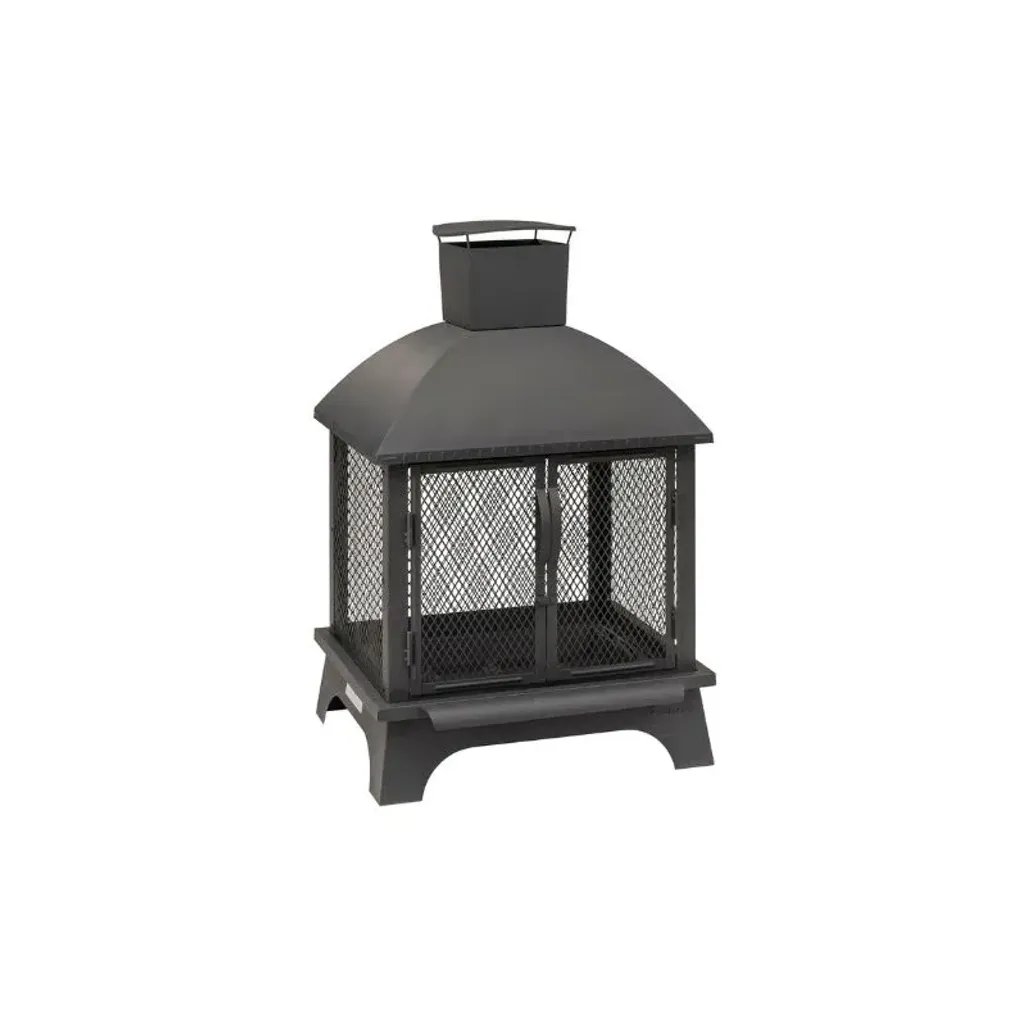 The Landmann Feurkorb Fire Pit has a fireplace design and a mesh screen for spark protection and provides a 360° view of your fire. Features two double-hinged doors and a chimney, that will allow for better dispersion of smoke.