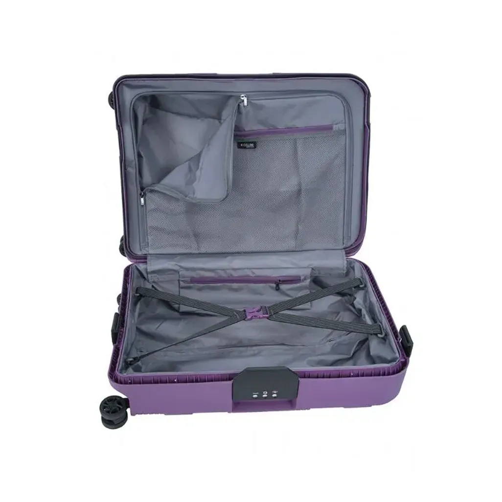 Maneuvering through the airport is seamless thanks to its 4 double-glider wheels and telescopic pulling handle, complemented by a top handle for easy lifting. For enhanced security, the integrated TSA multi-lock keeps your belongings safe, while the 10-year warranty provides added peace of mind, making the Cellini Safetech Plum Carry-On Trolley Case a reliable and stylish choice for any traveler.