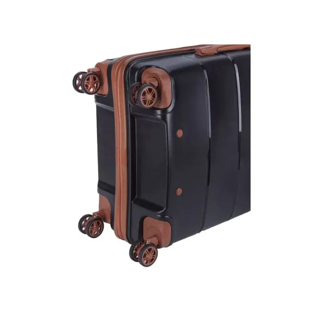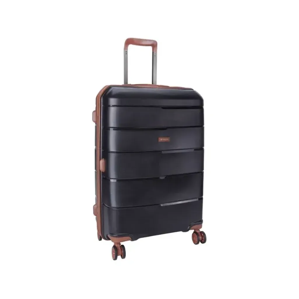 Experience seamless travel with the Cellini Spinn Medium Black Trolley Case, designed to elevate your journey to any destination. Crafted from a stylishly molded polypropylene shell, this trolley case combines durability with contemporary elegance. Its four smooth-gliding wheels ensure effortless maneuverability, while the striking contrasting colour trim not only enhances its appearance but also makes it easy to spot on luggage carousels.