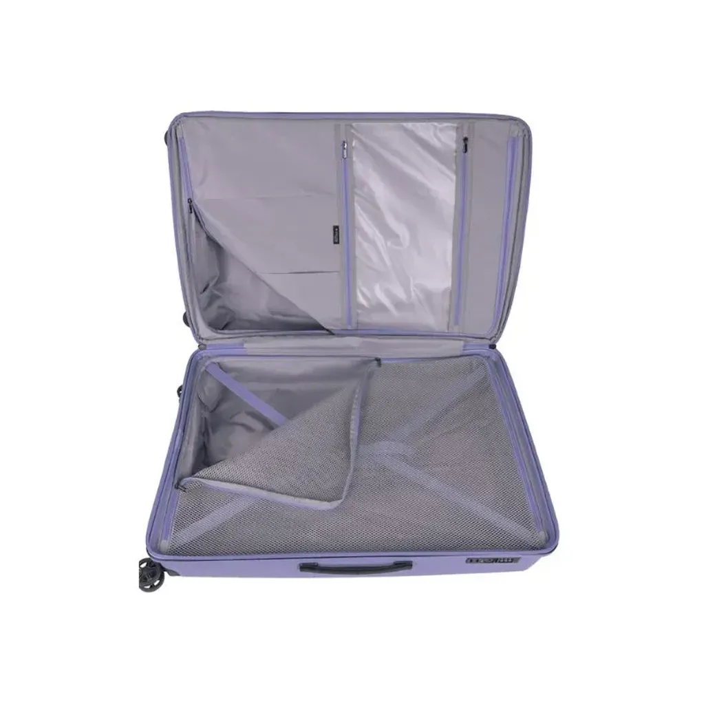 Need more space? The Expander feature adds an extra 20% packing capacity when needed. Security is assured with the integrated TSA lock, while the thoughtfully designed light grey interior of the Cellini Starlite Lilac Medium 4 Wheel Trolley Bag features a mesh lining, and the Inside Story Packing System features a wet pouch for damp items.