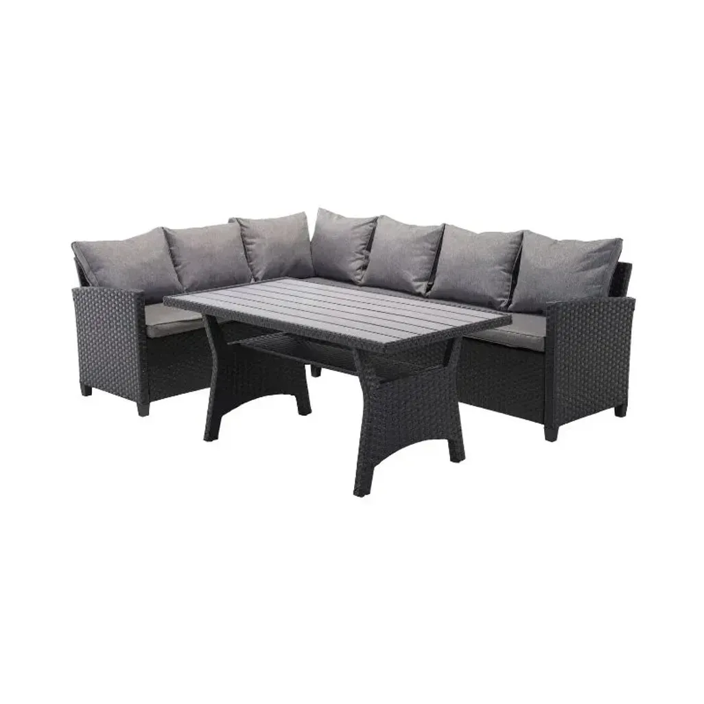 Enjoy hosting social events outdoors with this Hii Terrace 3 Piece Patio Set. This set includes a table that can be used for snacks, drinks or decorative items. It's made from Polly Rattan and comes with cushions that provide back support and offer more comfort. You can even enjoy an evening outdoors watching the sunset while experiencing absolute relaxation.