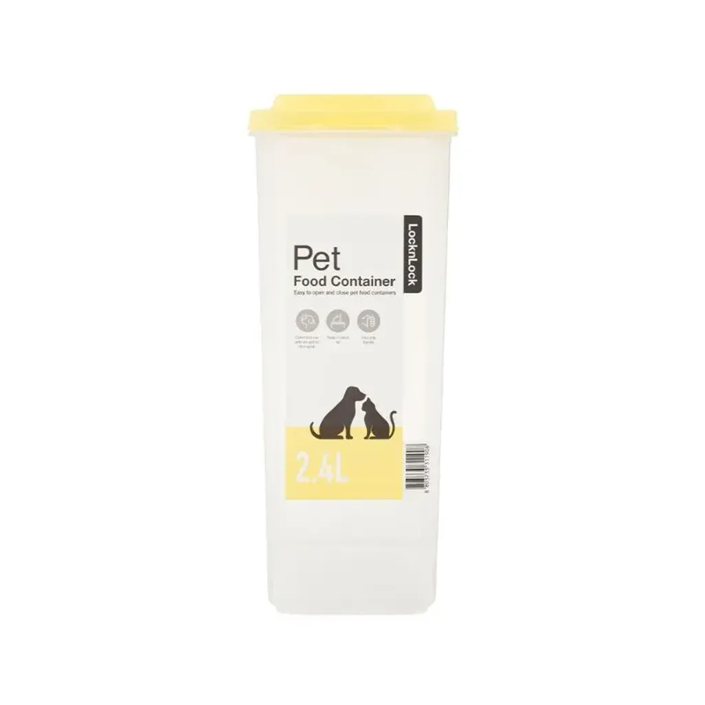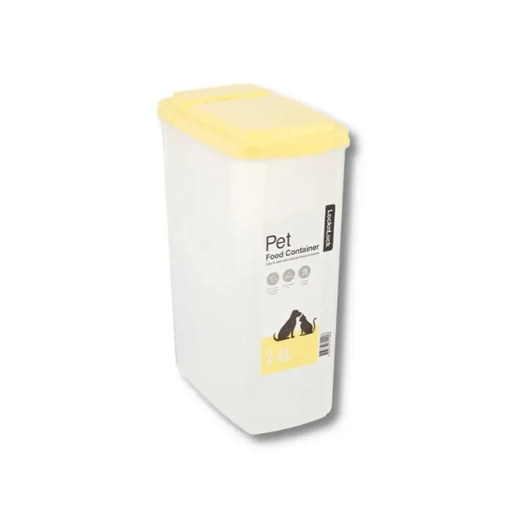 This Dry Food Container is made of Polypropylene Plastic (PP). It has a yellow design, which is one of the colours that dogs are able to discern. The LocknLock Pet container has a 2.4L capacity, and a space-saving slim body design.