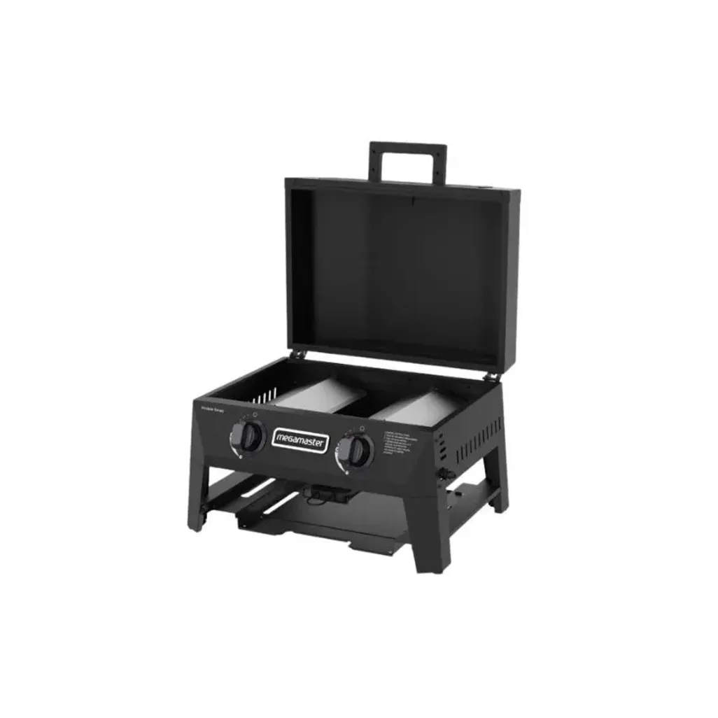 Bake your favourite pizzas in the comfort of your own home with this Megamaster Venture Series 4-in-1 Pizza Oven. Featuring 2 stainless steel burners with a 19000BTU heat output, a push-and-turn ignition system with cast iron cooking grids. This oven uses gas and can accommodate a 9kg gas bottle.
