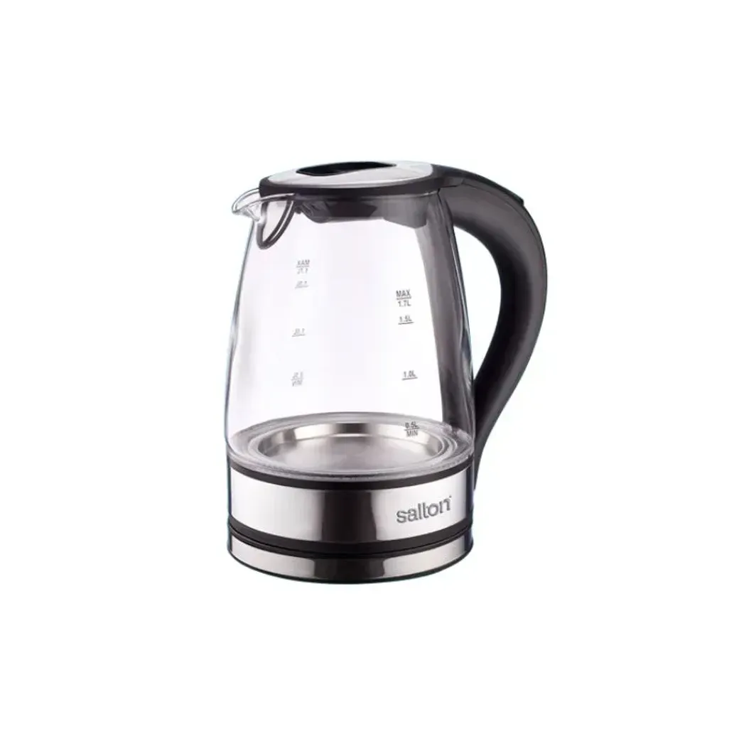 The Salton 1.7L Glass Kettle has a 360° swivel base, automatic switch off, and a 1.7L capacity, which will fill up to 7 standard cups. It features a removable and washable scale filter. read more ↓ read less ↑