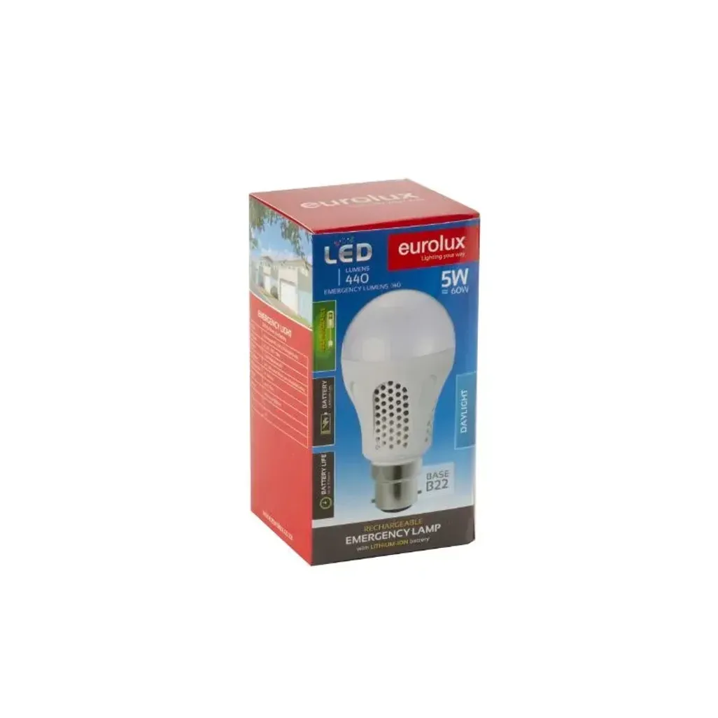 The Eurolux Rechargeable B22 LED Light Bulb is a replacement for any standard bulb, and it has a built-in lithium-ion battery, that will come in handy during a power outage. This LED bulb has a battery life of up to 3 hours.