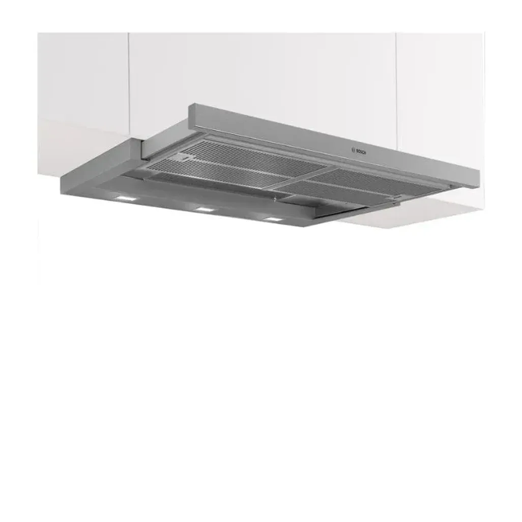 The Bosch 90cm Series 4 Telescopic Extractor Hood has a LED light, 3-speed settings, an integrated EcoSilence Drive motor and it has removable metal grease filters that are dishwasher safe. read more ↓ read less ↑
