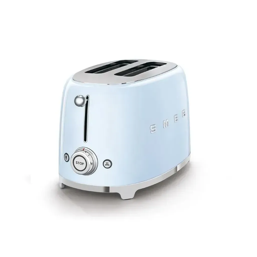 The Smeg Retro Pastel Blue 2 Slice Toaster has a retro style that combines a classic, vintage look with cutting-edge technology. It dominates its surroundings, and the Italian design blends art and functionality.