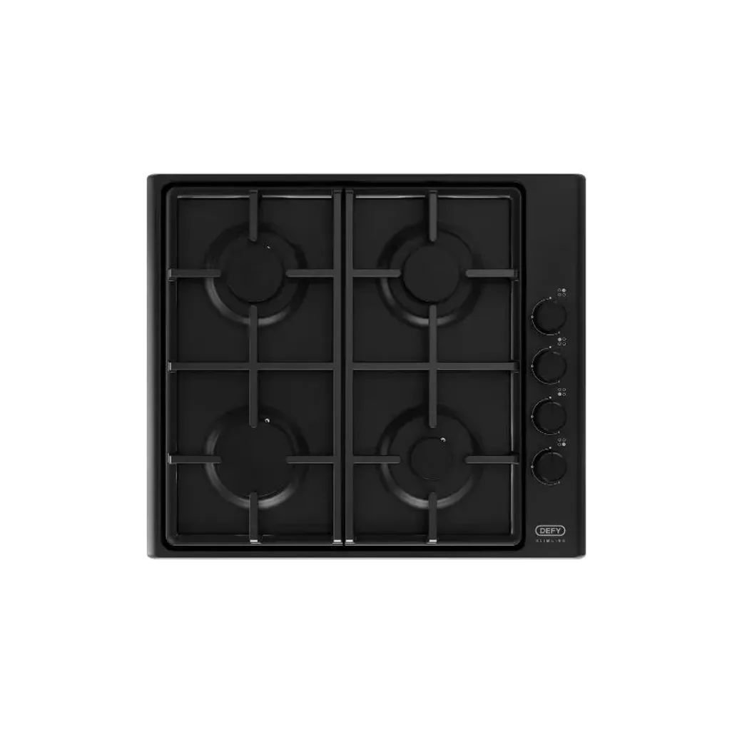There are 4 gas burners plates and the Defy Gas Hob has a Flame Failure Safety Device which stops the gas flow immediately when the flame goes out. The Defy Black Hob supports cast iron pots and pans and it is perfect for the most everyday cooking requirement.