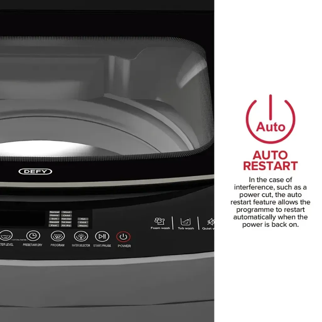 In the unlikely, but possible event that there is load shedding, or you accidentally unplug a top loader, you will need to start a cycle from scratch. Luckily, this Defy 17kg Top Loader, has an auto power-off with a power cut memory feature, which will allow your washing to start up where it left off when the power supply is reconnected.
