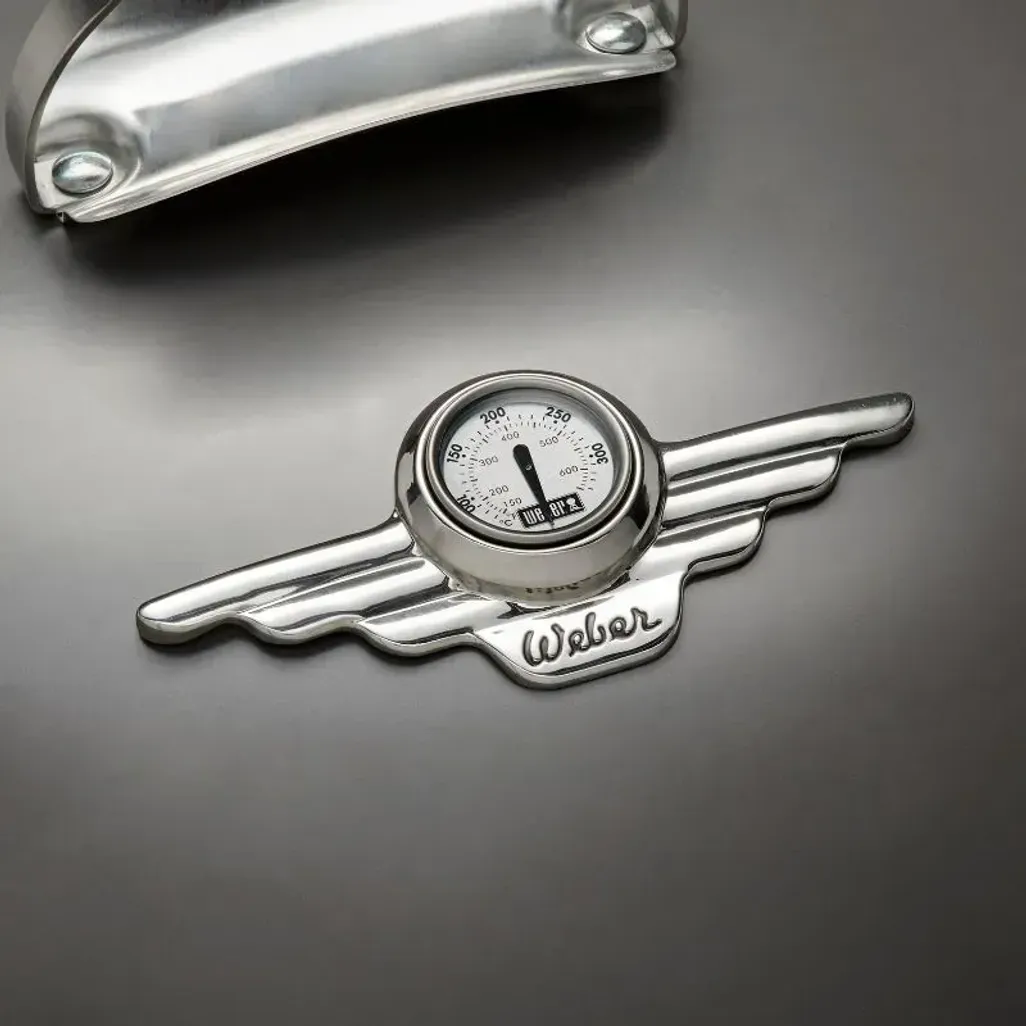 The Weber 70th Anniversary EDT Grey Kettle Braai has a porcelain-enameled bowl and lid, built-in lid thermometer, solid bottom tray, and one-touch cleaning system. For a nostalgic look, there are wood-looking handles and two retro-looking wheels. read more ↓ read less ↑