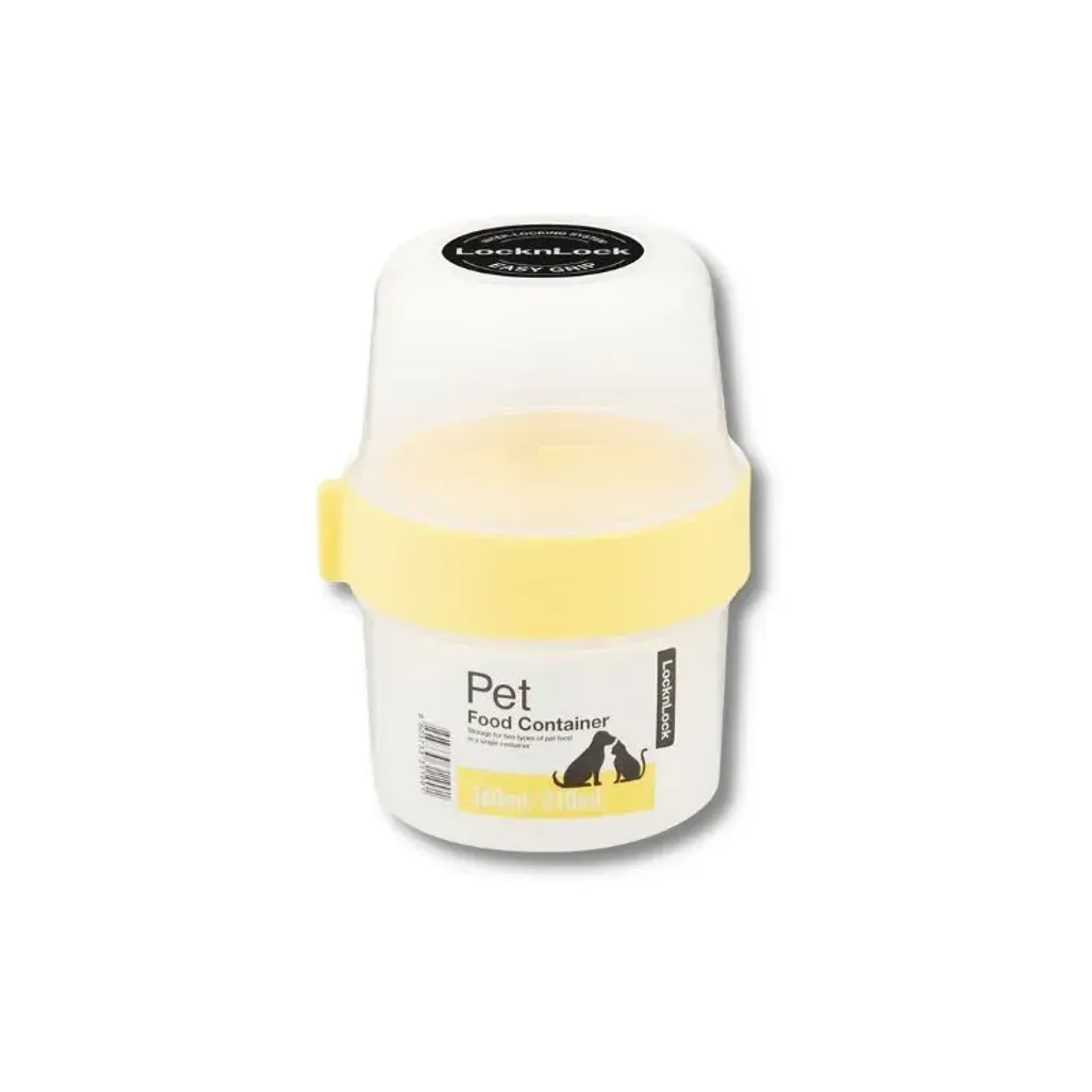 The LocknLock Pet Dry Food Container is made of Polypropylene Plastic (PP) and Silicone, and has a twist-off design for easy opening and closing of the container. It has a yellow design, which is one of the colours that dogs are able to discern. The LocknLock Pet container has a 310ml capacity, and 360ml capacity.