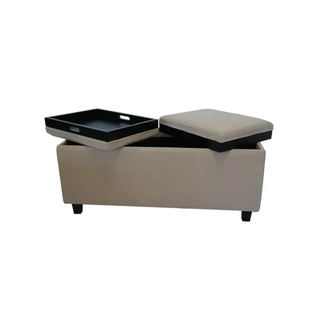 The Toronto Storage Bench is made of fabric, and it can be used for additional storage, however, it can provide additional seating space. There are two lids, that can be turned around, to use as trays, for when you have guests over. read more ↓ read less ↑