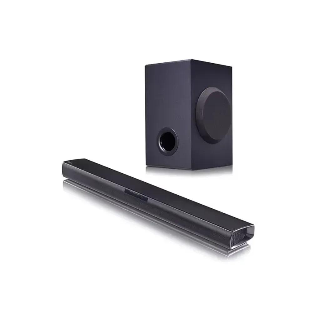 The LG 2.1 Channel Soundbar comes with a wireless subwoofer, and was engineered to produce clear sound without distortion. With a simplistic design, this soundbar will match and enhance your audio visual experience.