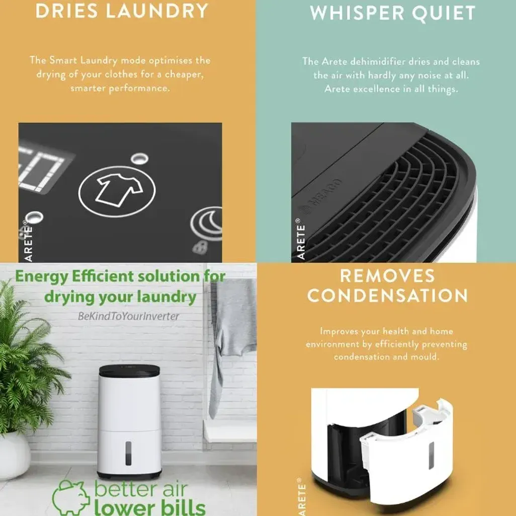 With only a 35dBA noise output, this Arete Dehumidifier will be the quietest dehumidifier that has ever been created.