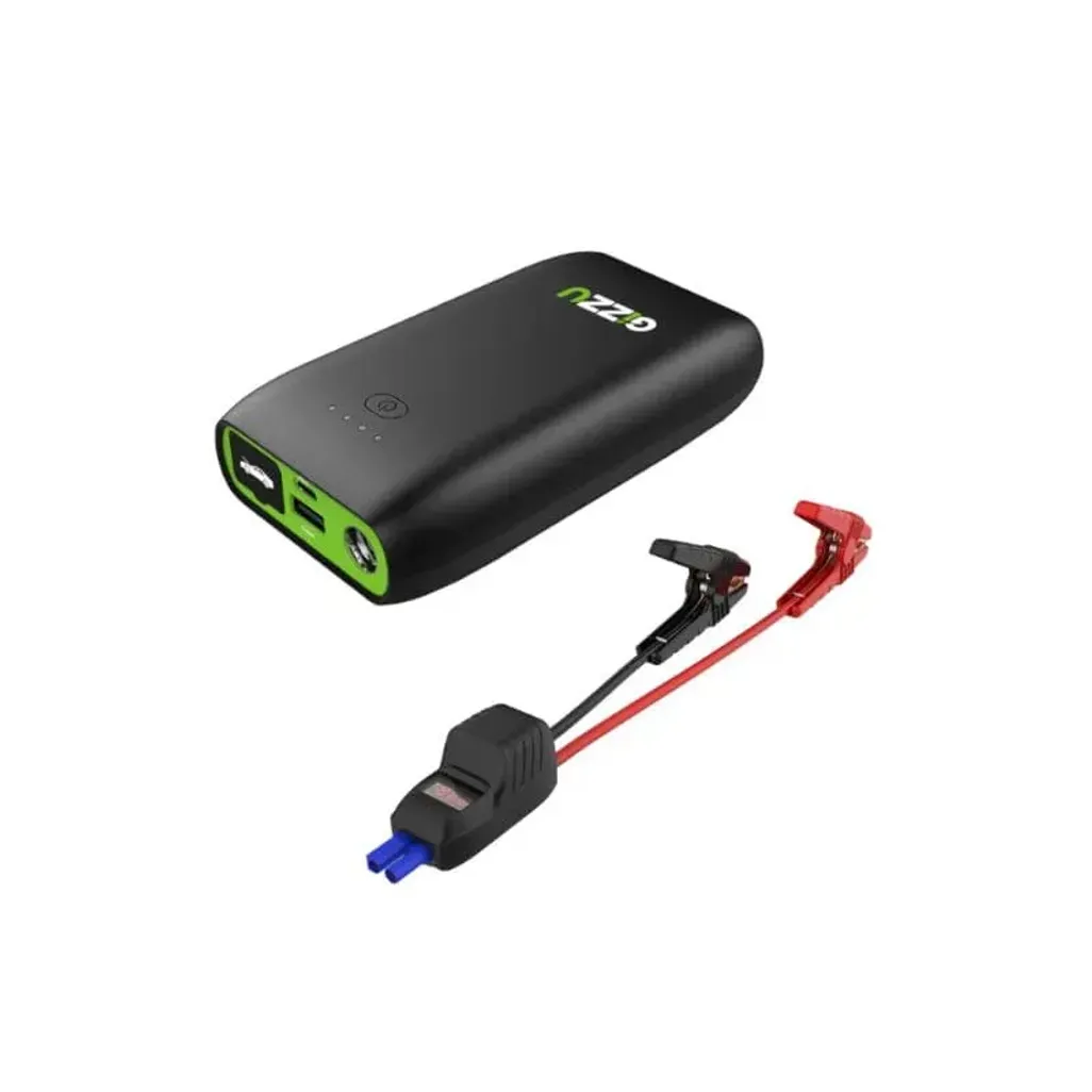 With the help of the Gizzu Jump Starter, you will never be stranded with a flat car battery again. With a peak current of 1000A, this jump start is about to jump-start a petrol engine, up to 5 litres, or a diesel engine, up to 3 litres. The Gizzu Jump Starter features a sparkless smart cable with an LED display, that will give up to 9 different protection function readings.