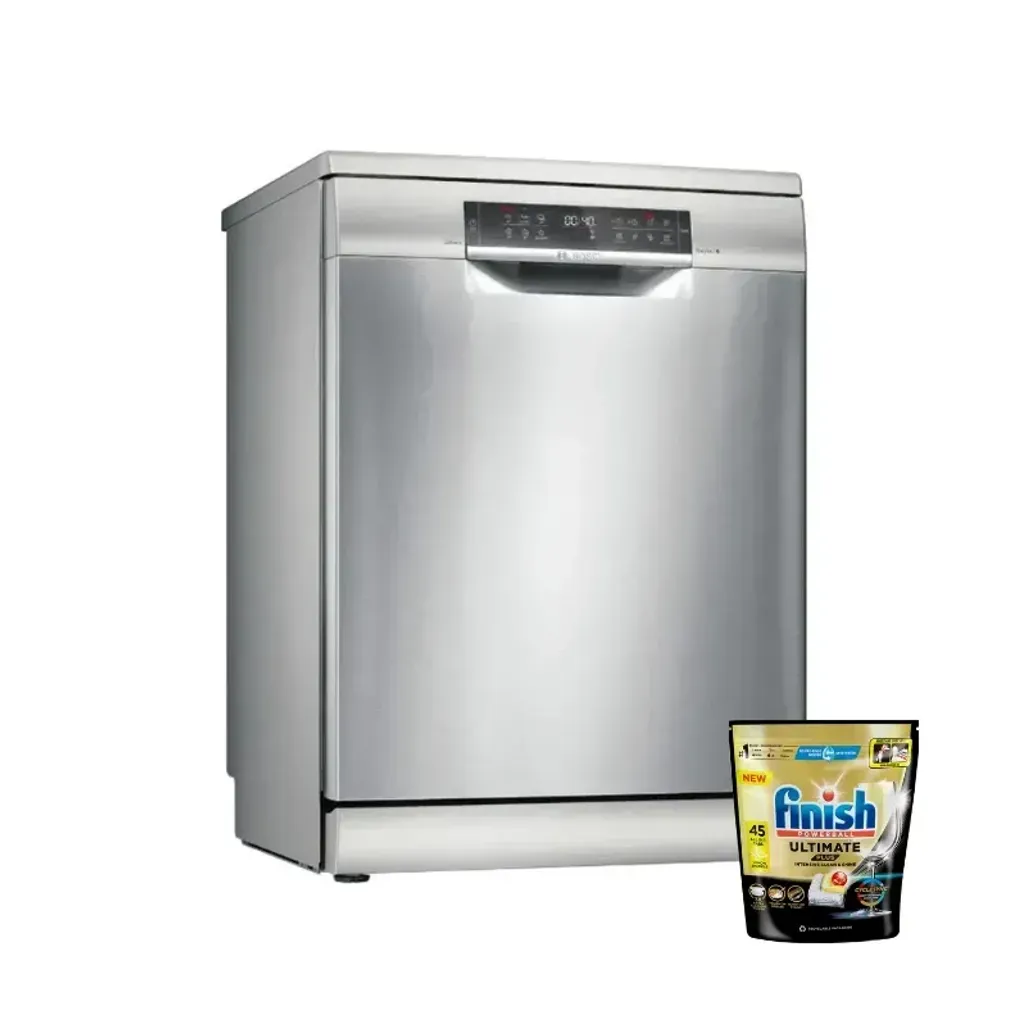 Purchase any Bosch Dishwasher and receive a Free 45 Finish Ultimate Plus pack. Claim your finish coupon via WhatsApp at 083 336 2923. Valid until 30 June 2026. While stocks last. T’s & C’s apply!