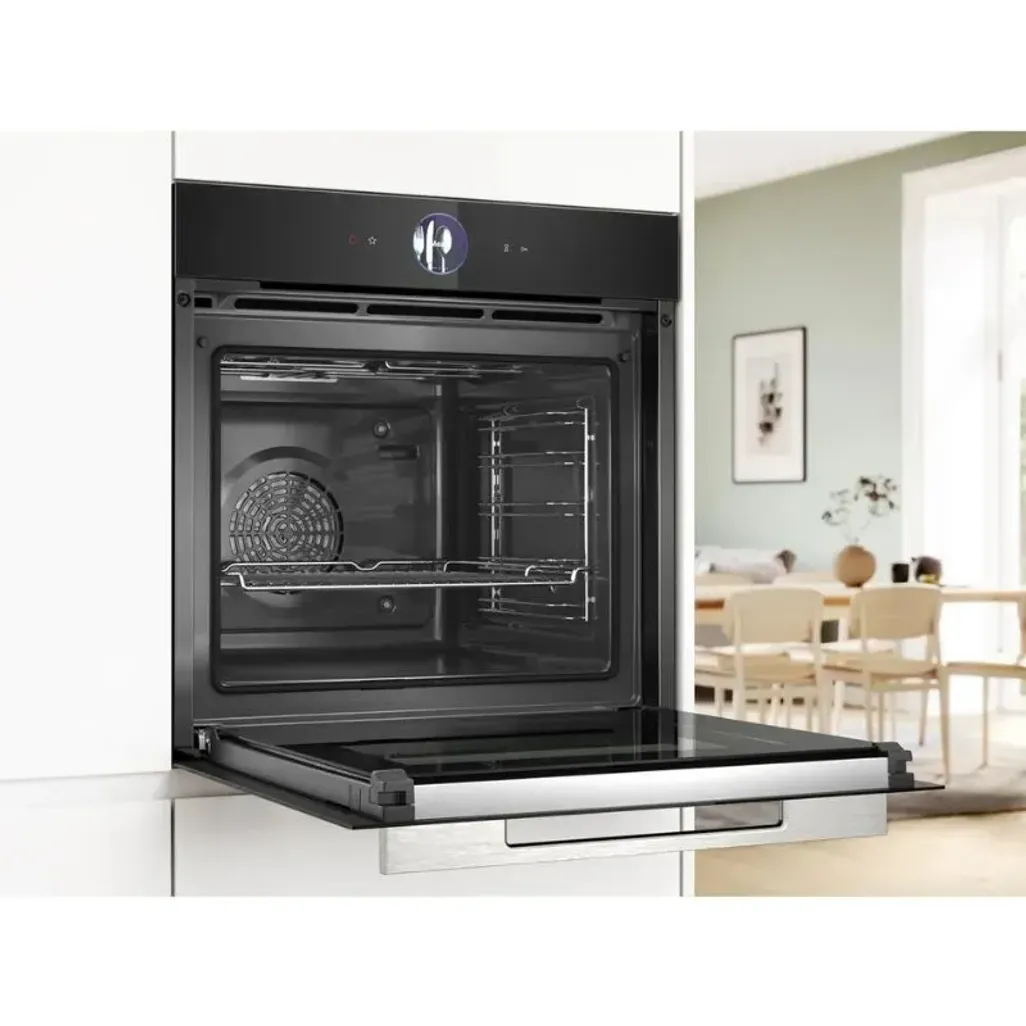 The Bosch 60cm Home Connect Series 8 Oven has an A+ energy rating, a digital control ring, 14 heating methods, and 4D Hotair for optimum heat distribution. PerfectRoast Plus features a meat probe so that you can create the perfect roast. read more ↓ read less ↑