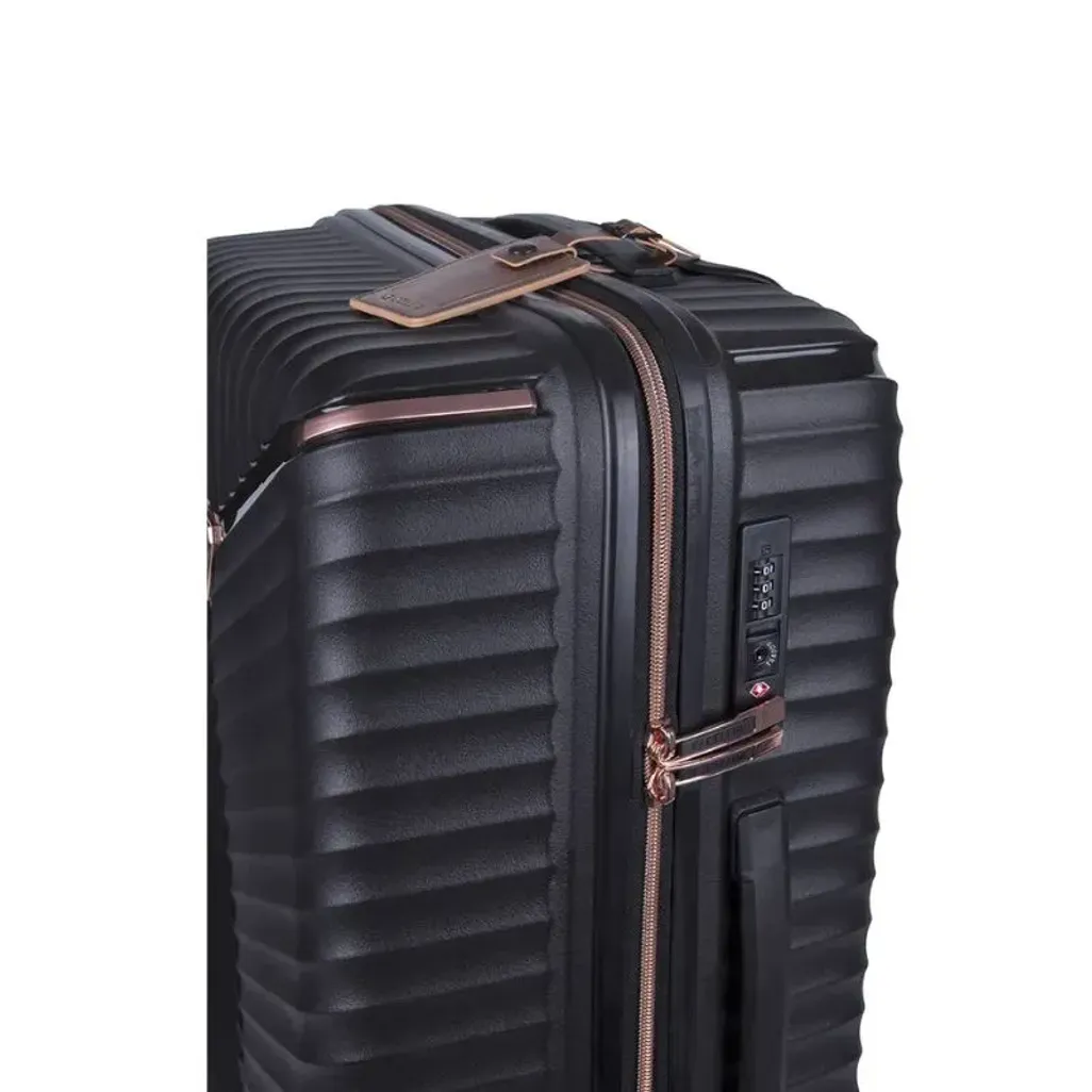 This Allure Hardshell Trolley Case has a modern, yet minimal design and accents to add a refreshingly edgy look. There is an integrated TSA combination lock, and with a 68L volume, this bag can hold all of your travel needs.