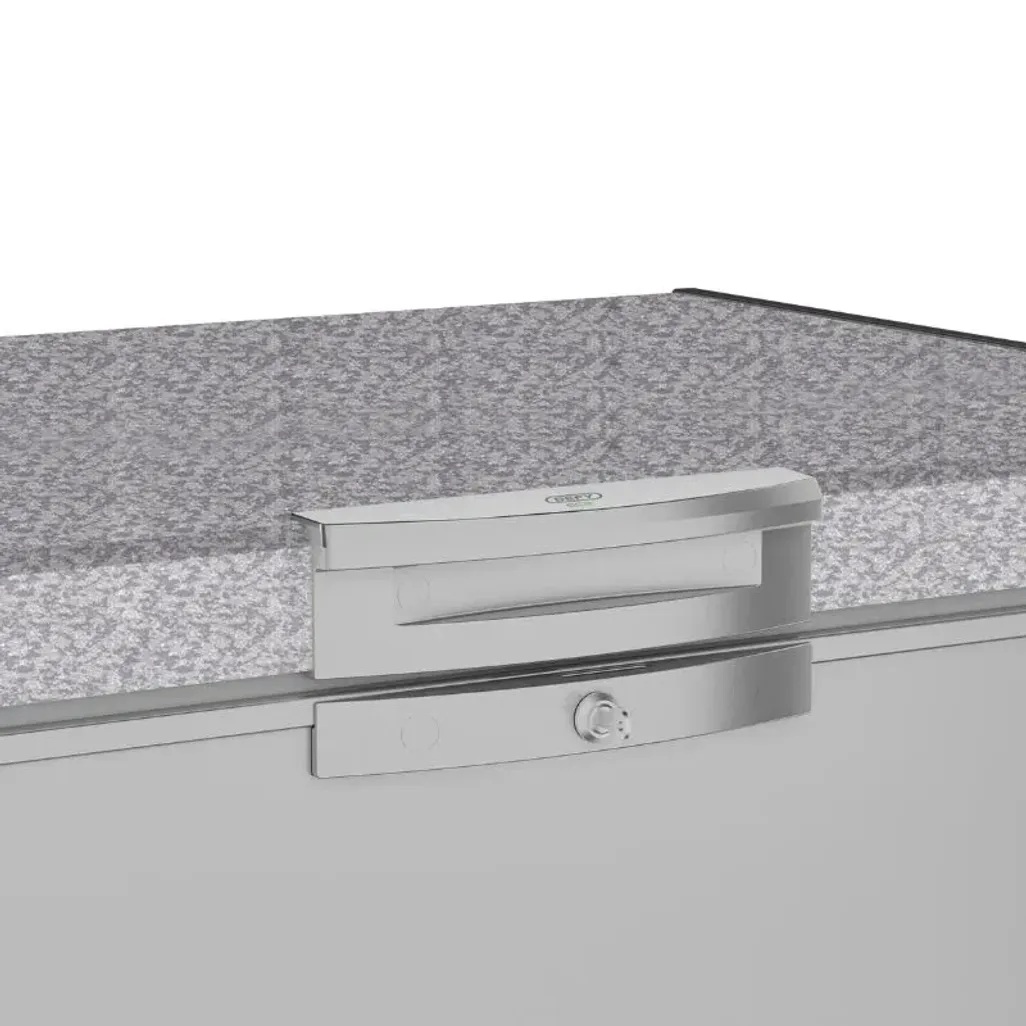 The Defy 254L Metallic Chest Freezer features a new Chill In Technology, that will act as a safeguard. When the power supply is interrupted, food can remain frozen. This superior cooling retention feature will keep food frozen for at least 36 hours.