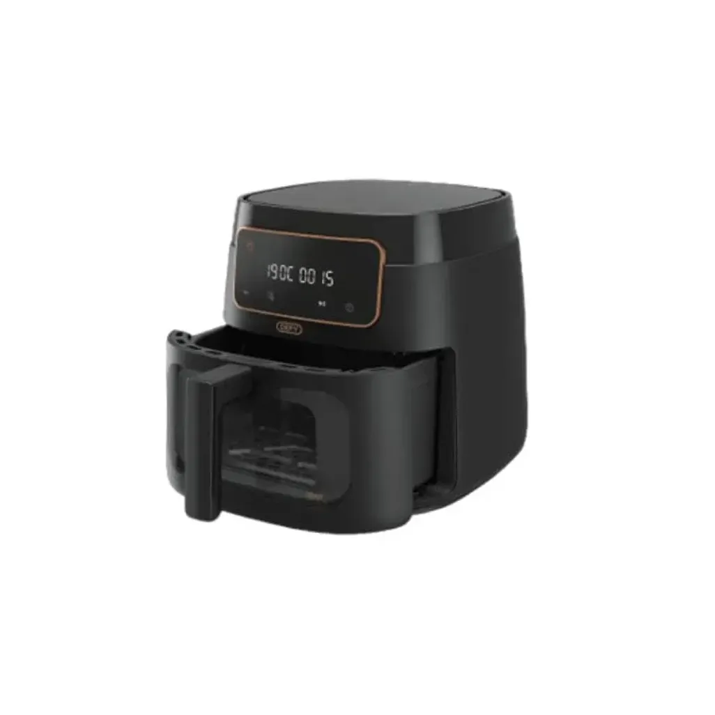 The Defy 7.6L XXL Electronic Airfryer will be your appliance of choice when you prepare delicious meals for you and your loved ones. This model has a 7.6L basket capacity, 1750W Power and a temperature range of up to 200°C, with a touch control colour panel and plastic housing with a basket that allows you to view your food cooking, you just need to decide what food are you making next.
