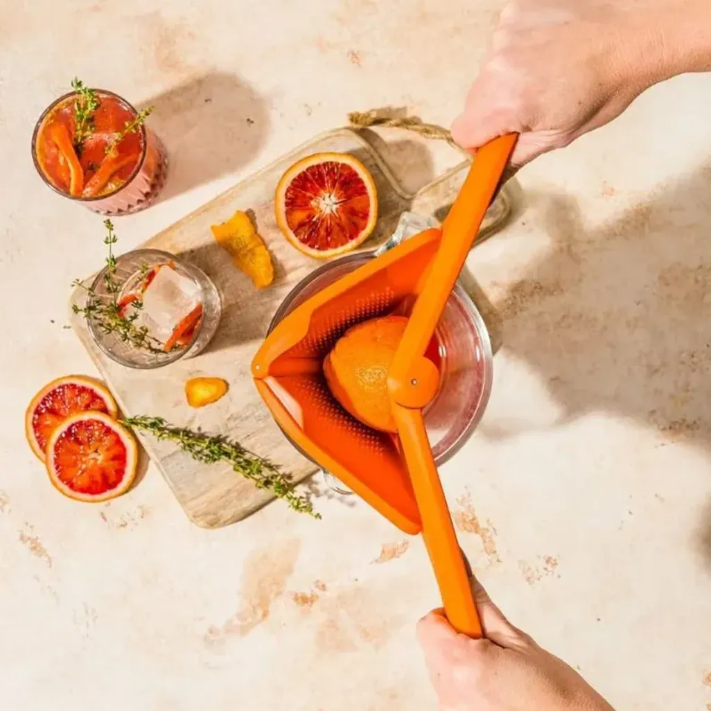 Enjoy mess-free and simple juicing with the Dreamfarm Orange Juicer. Its slimline citrus press folds completely flat, making it easy to store instead of taking up unnecessary space. The juicer is designed with a two-handed system, allowing you to use arm strength to deliver maximum juice extraction.