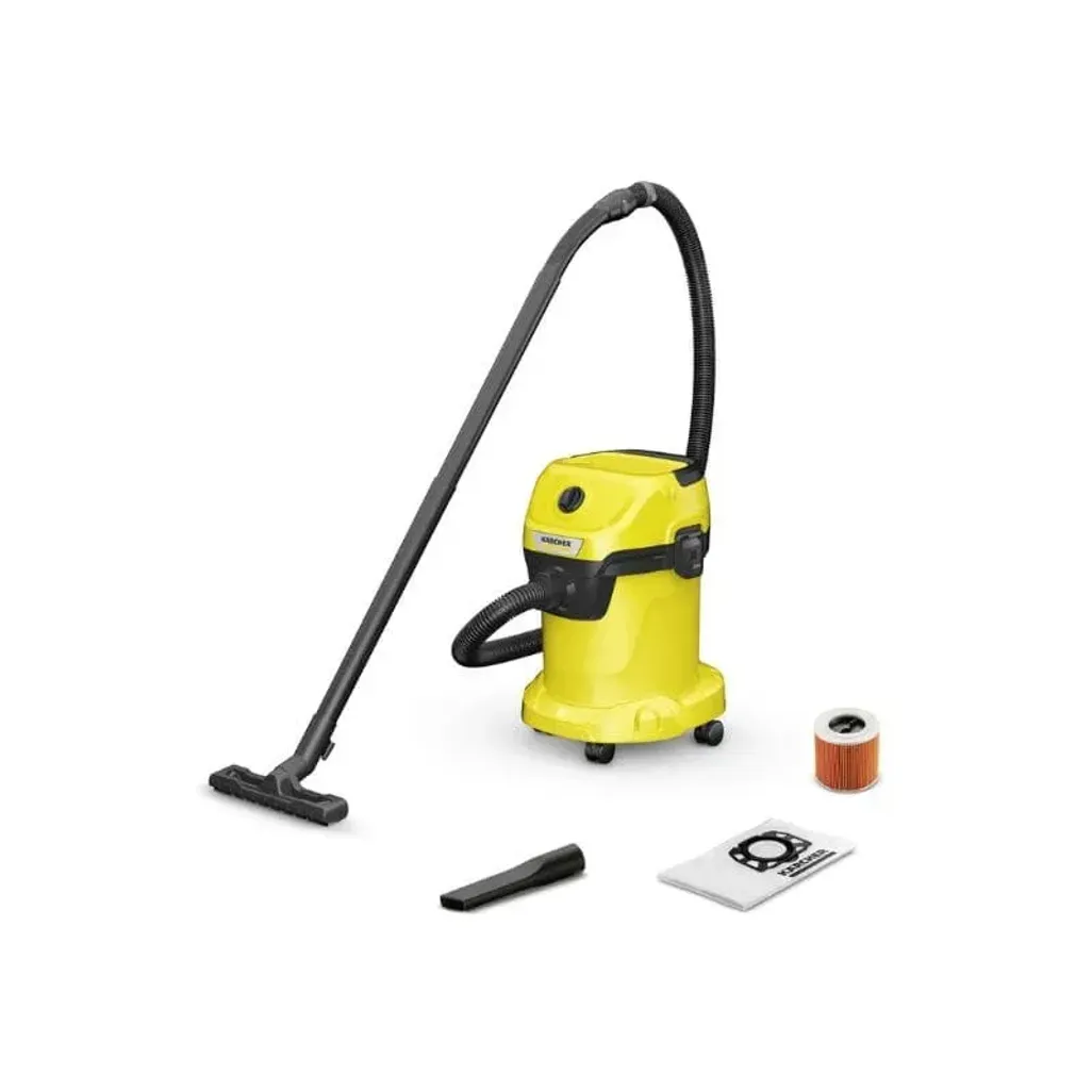 The Karcher Wet & Dry Vacuum WD3V-17 impresses with its compact design and a robust 17 L plastic container, 4 m cable, 2 m suction hose, and fleece filter bag. Thanks to the single-piece cartridge filter, it is possible to vacuum both wet and dry dirt without filter replacement. The blower function is useful for cleaning areas that are difficult to access.