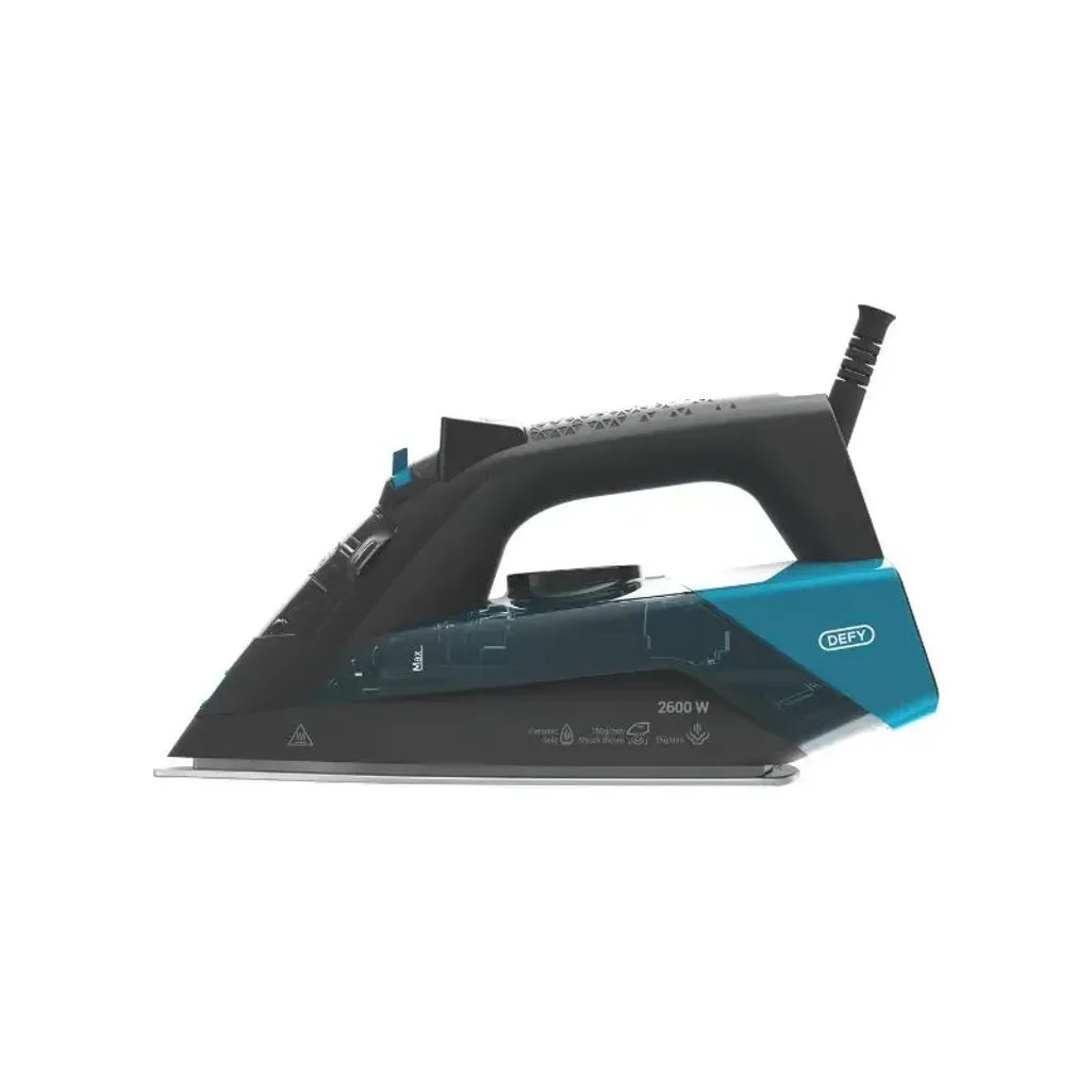 With a 2600W fast heat-up and a smooth ceramic soleplate, the Defy 2600W Steam Iron offers powerful steam to remove those tough wrinkles. It has a 240ml water tank, shock steam of 120g/min, a 35g/min continuous steam and an anti-drip feature for easy maintenance. Enjoy manual control with the adjustable temperature settings.