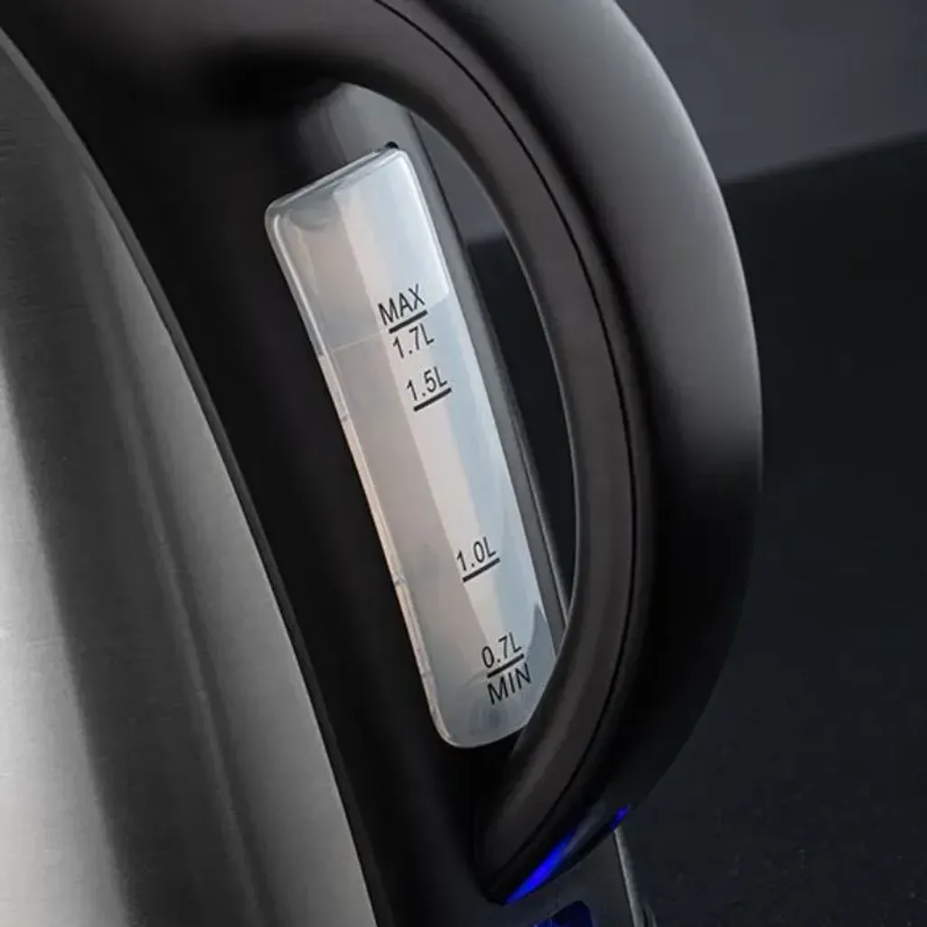The Russell Hobbs 1.7L Stainless Steel Kettle has a brushed stainless steel design, and a 1.7L capacity, which equates to more than 6 standard cups. The 360° rotational base makes it easy to fill and use the kettle without having to unplug it when you have to carry it. Water level and millage are visible on the side of this stainless steel kettle.