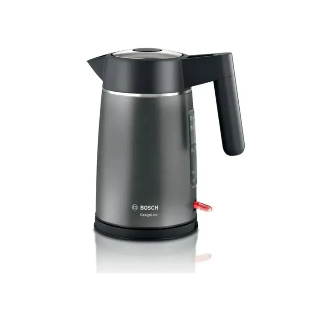 Heat exactly the amount of water you want using the easy-to-read cup indicator, it helps you save energy by only boiling exactly the amount of water you need. With the Bosch DesignLine 1.7L Graphite Kettle pouring water into your cup should be easy and splash-free. The optimal spout allows you to pour the hot water easily and ensures that the water flows evenly. Ergonomic operation for easy opening of the lid at the touch of a button. Thanks to the easy-to-read water scale there is perfect visibility of the required amount of water in the kettle. The Bosch DesignLine 1.7L Graphite Kettle turns off automatically as soon as the water boils or when the selected temperature is reached. The triple safety system safeguards against overheating and boiling dry and automatically switches the kettle off when lifted off the base. Limescale can affect the taste of your tea. Thanks to the removable filter, no lumps of limescale get into the water.