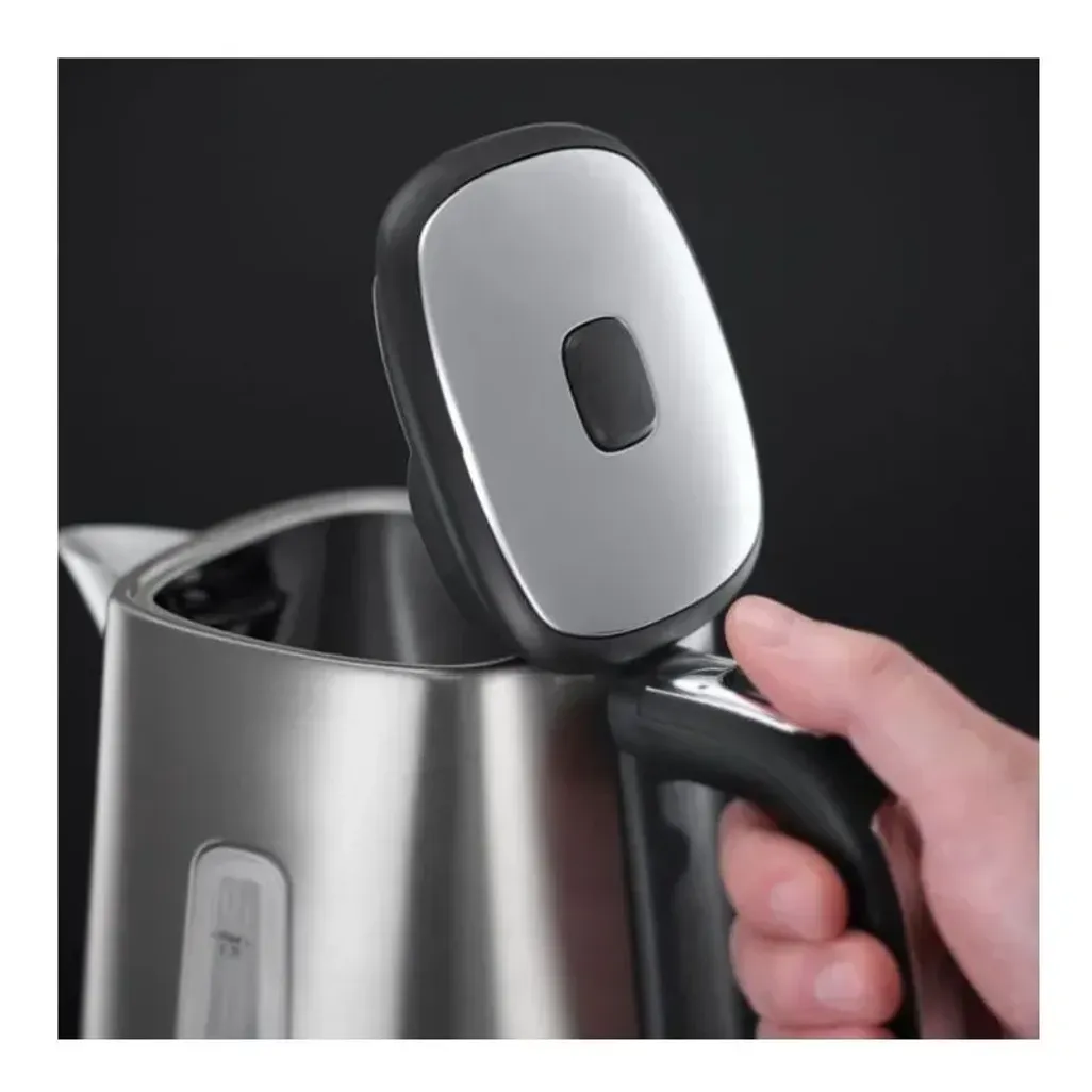 The benefits of the Russell Hobbs 1.7L Luna Grey Kettle include a removable filter located inside the kettle, this assists when you need to manage scale build-up in your kettle, and it also will greatly improve the taste and quality of your beverages. Other features include a sleek Stainless Steel and natural Premium Stone Texture Finish, a power light indicator, illuminated water windows, and the Russell Hobbs 1.7L Luna Stone Kettle saves up to 66% energy.
