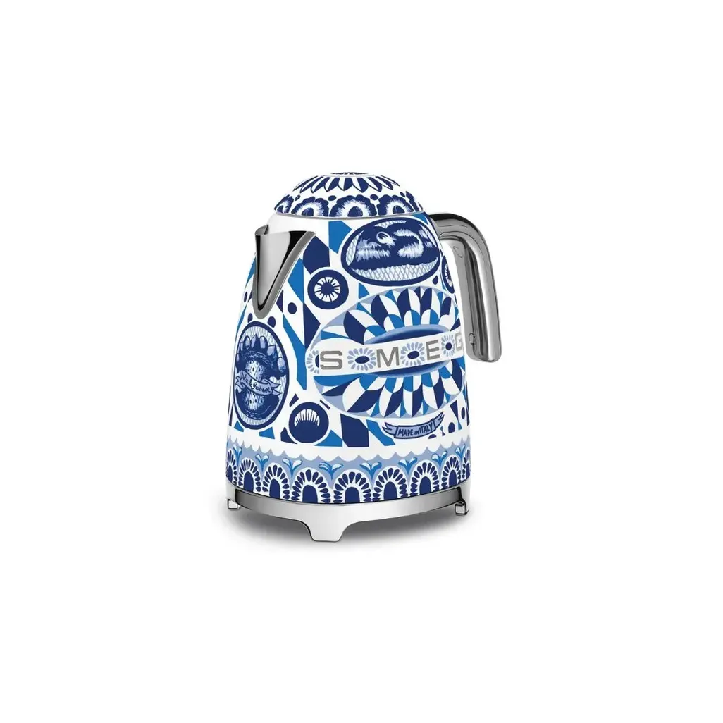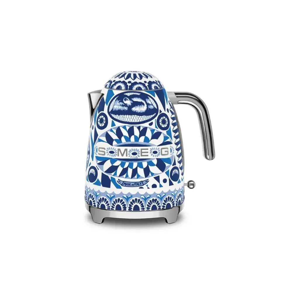 Feast your eyes on this electric Smeg Dolce & Gabbana Blu Mediterraneo Kettle that will leave you breathless with its unique design and look. When walking into your kitchen, the kettle will make a statement about luxury appliances. With it's 360° swivel base, you are able to move freely. Uniquely designed with a Stainless Steel body material, plastic handle with a polished base chrome.