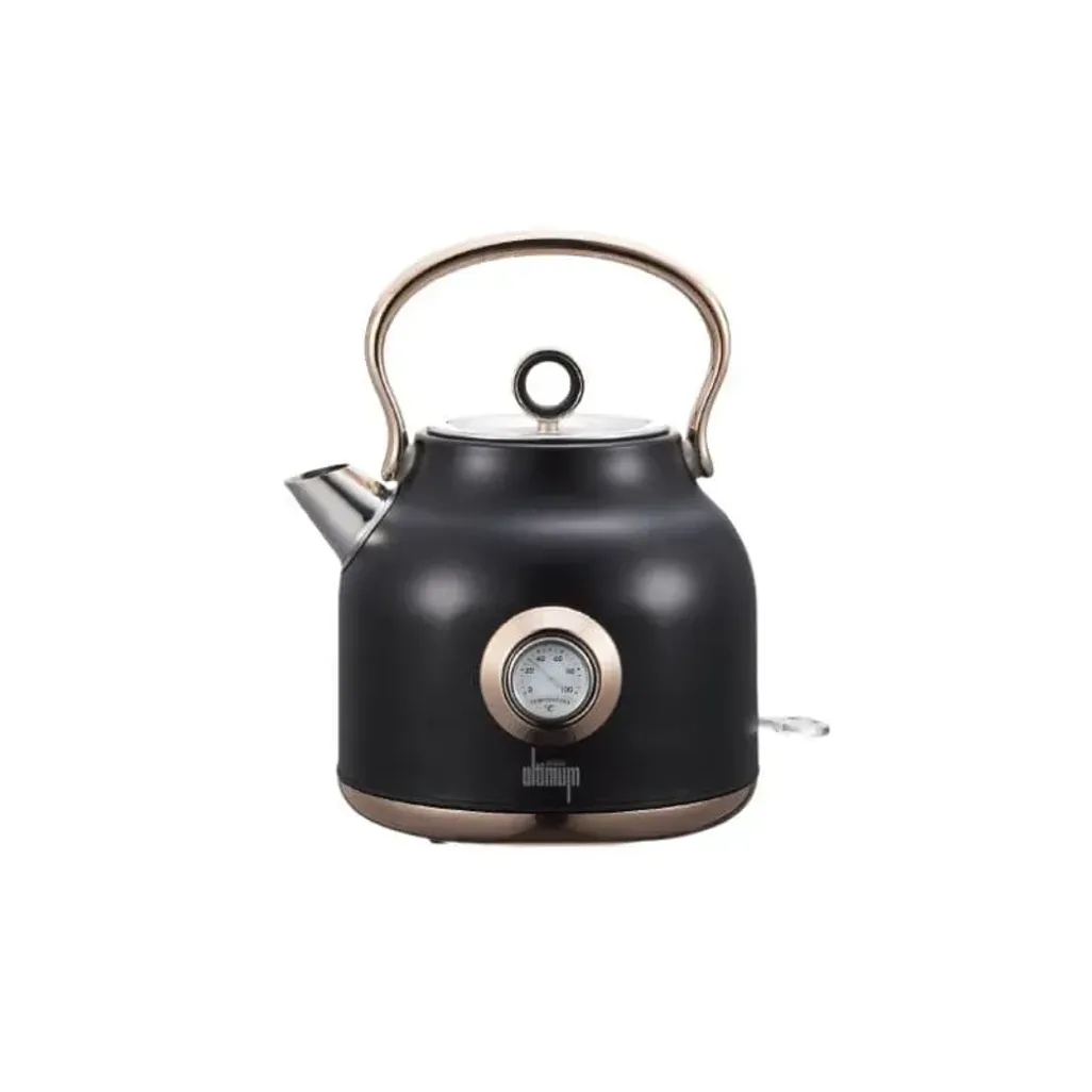 The Sunbeam Ultimum Retro 1.7L Kettle is a 1.7L cordless kettle in a beautiful stainless steel black and rose gold finish, a round temperature gauge, a cordless 360-degree base and a rear water level indicator.