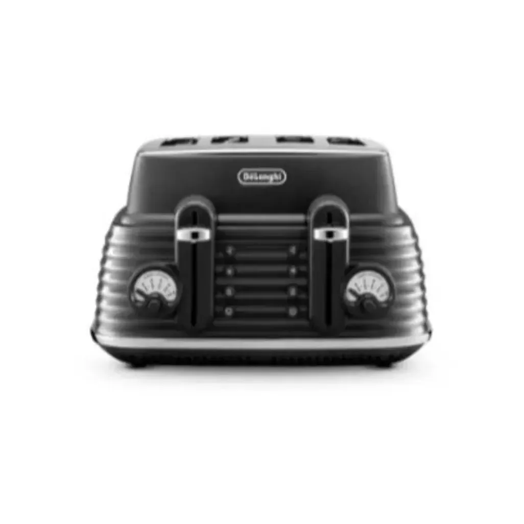 The Delonghi Scultura 4 Slice Granite Black Toaster has 2 crust trays that can easily be removed in order to clean the bottom of the 4-slice toaster and prevent hazardous build-up inside the toaster.