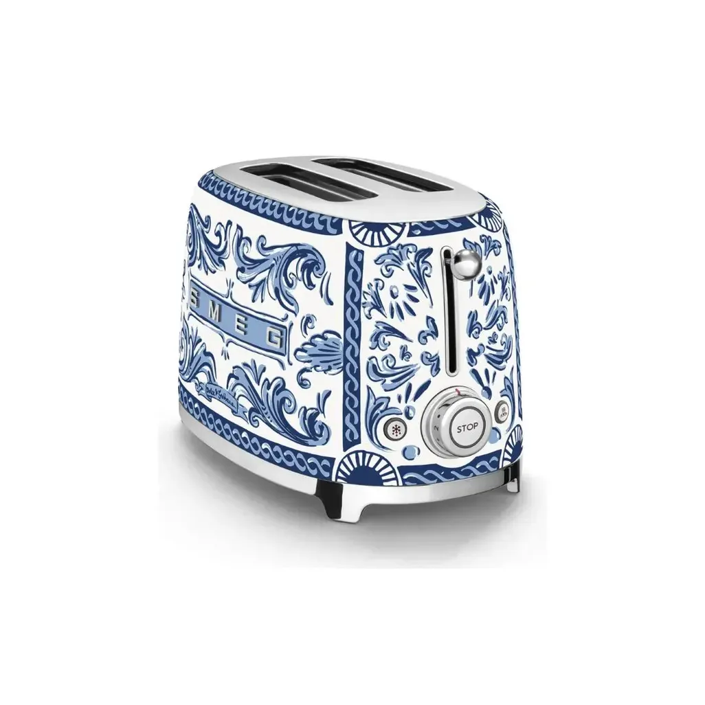 When looking for a 2 slice compact toaster, take a look at the Smeg Dolce & Gabbana Blu Mediterraneo 2 Slice Toaster. It has 6 different toasting levels which also includes a Bagel function to toast only one side. There are wide slots for different slices of thicknesses with an automatic centering. You don't need to worry about putting effort into cleaning your toaster. Thanks to the crumbtray, cleaning the inside has become easier. It also has a Defrost and Reheat function for your convenience.