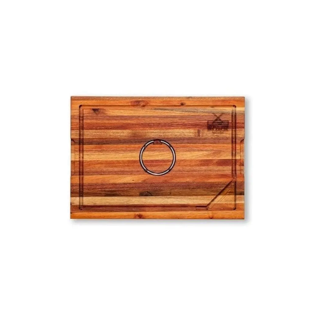 - Side two - has a stainless-steel spike ring, that will hold meat in place while you carve it, while the juice gutter will absorb all free-running meat drippings.