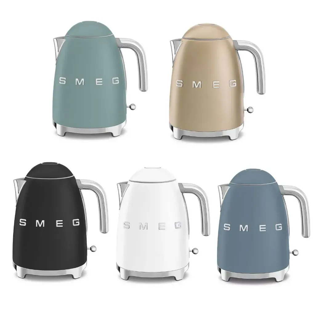 The dimensions of the Smeg 1.7L Cordless Kettle are H 25cm x W 22cm x D 17cm, and this kettle has a 2-year guarantee.